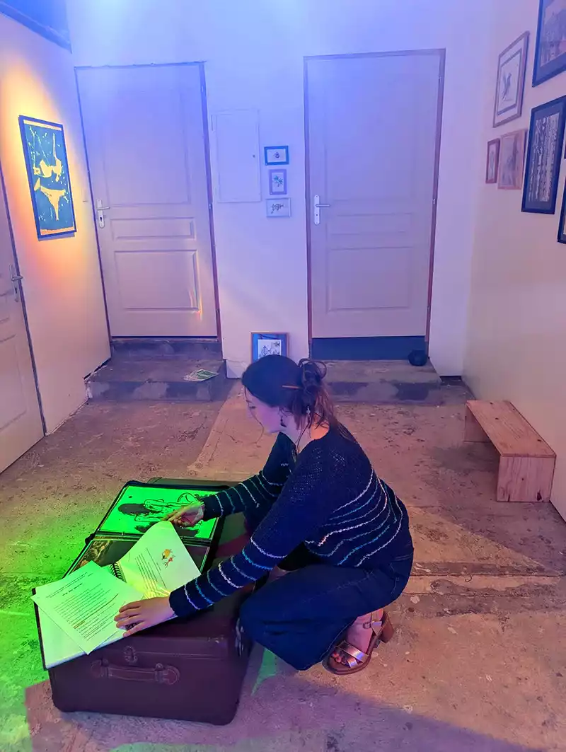 Curieuse et passionnée, Léa explore avec liberté une grande variété de techniques et de médiums : peinture, dessin, collage, textile, couture, photographie, cyanotype, linogravure…